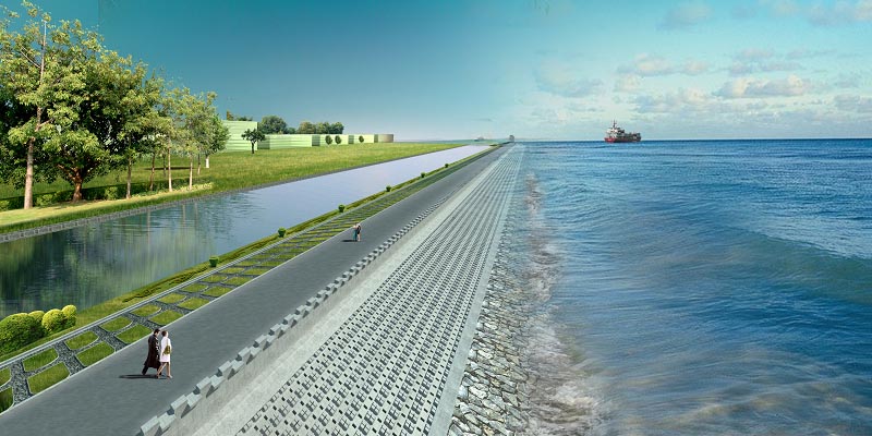 石壩消浪的缺點(diǎn)是投資較大,施工比較復(fù)雜,對(duì)示范試驗(yàn)區(qū)水動(dòng)力環(huán)境和景觀影響較大,不能保持水面完整。不過(guò)對(duì)石壩消浪加以改造,能夠比較便捷的打造親水平臺(tái),為人們提供休閑娛樂(lè)的平臺(tái),滿足人們的親水需求。